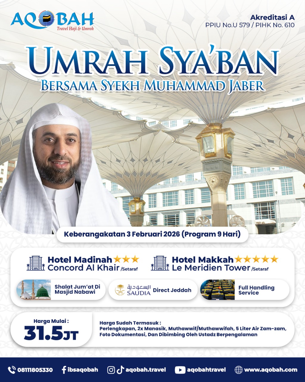 UMRAH SYABAN Bersama Syeikh Mohammed Jaber 03 – 10 FEB 2026 (9 Hari)